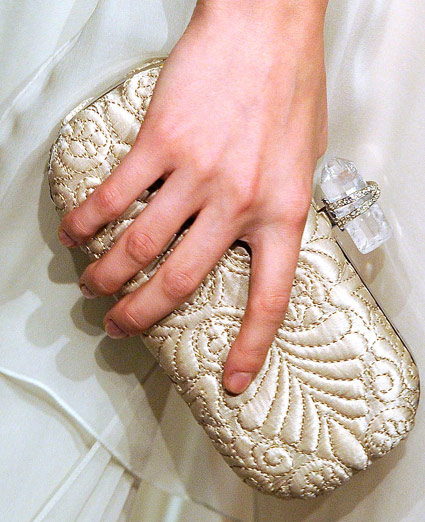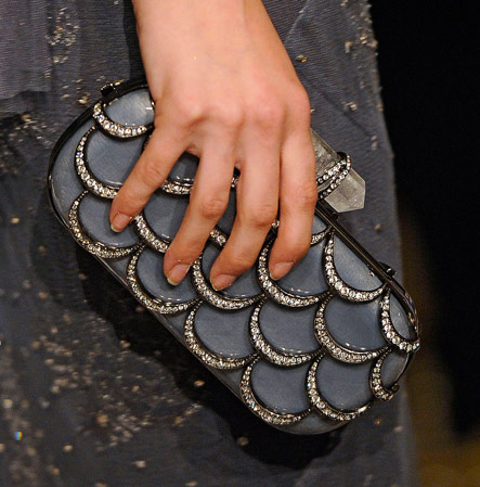 The blue gray bag is gorgeous! I love those crystal clasps on Marchesa’s evening clutches.