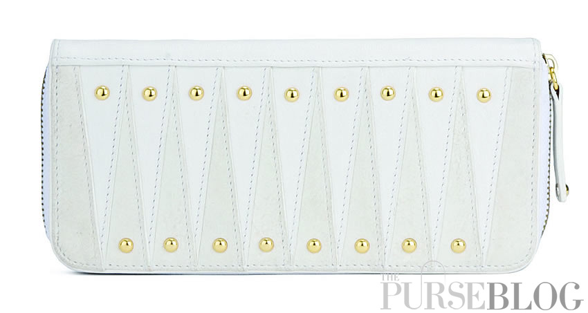 Diane von Furstenberg wants to give PurseBlog readers a sneak peak at her small leather goods for Resort 2010. This collection is named “Her Name is Rio” and will hit stores this November. The collection has four styles: Estella Long Wallet (pictured in White Leather), Estella Coin Purse, Estella Card Wallet, and Estella Makeup Bag (pictured in Violet Sea Leather). Color available will be black, white, and violet sea. Prices will range from $65 for the card wallet to $195 for the long wallet.