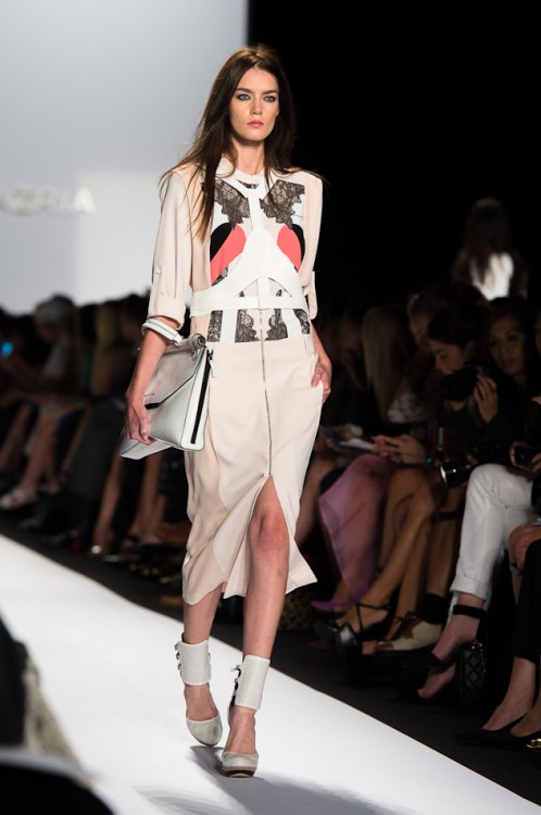 Of course, let me talk about the bags. The accessories were entirely simple and straightforward, with large oversized clutches and sleek handbags in solid colors which will offer a clean palette and work well with the clothing. I’ve been liking what BCBG is designing for its accessories collection; it seems to be coming a long way, and these bags may have been simple, but they did not lack a pleasing aesthetic. I left this show deciding I am pro-harness and pro-BCBG, so come Spring 2013 I will be adding quite a few BCBG Max Azria pieces to my wardrobe.