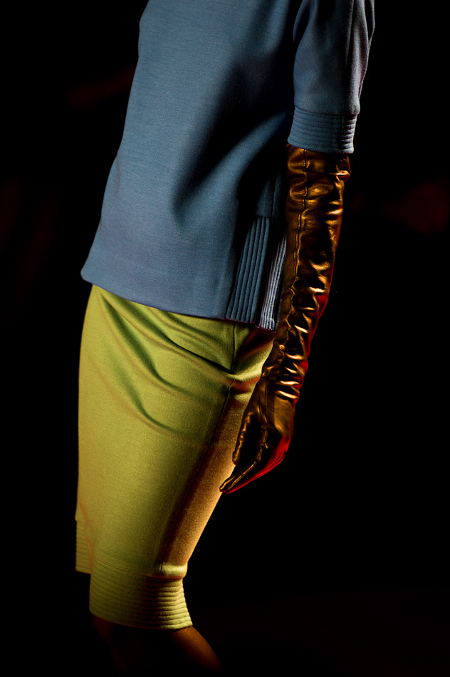 When I watch a runway show, I like to do things a little bit backward; instead of reading the provided notes before the show begins, I like to view the collection first to see if the impressions I had as a blank slate line up with what the designer had in mind. After all, when these clothes hit stores, they’re not going to come with a five paragraph explanation. In the case of Chadwick Bell Fall 2012, what was promised by the line sheet and what I saw in front of me were one and the same.