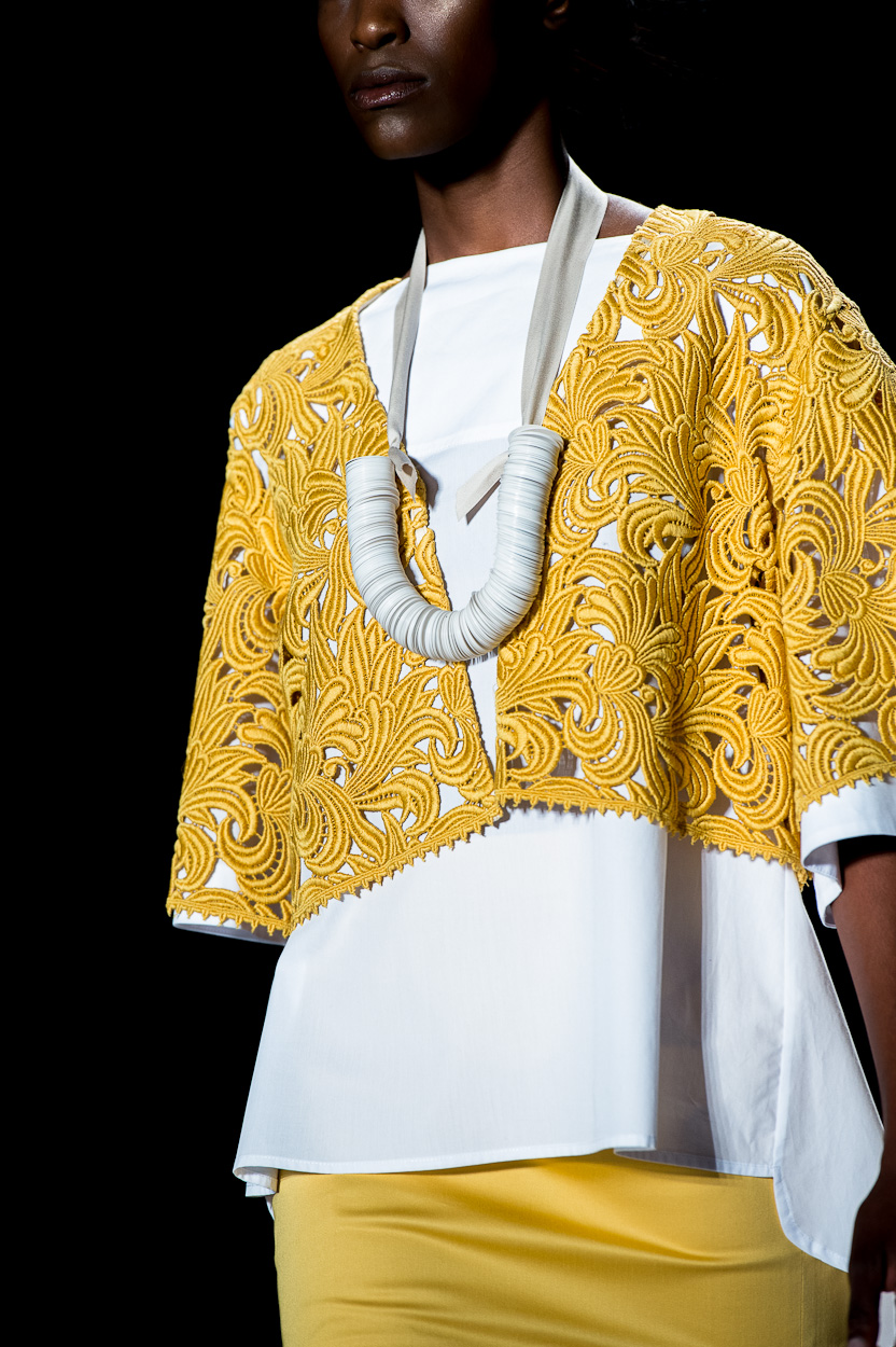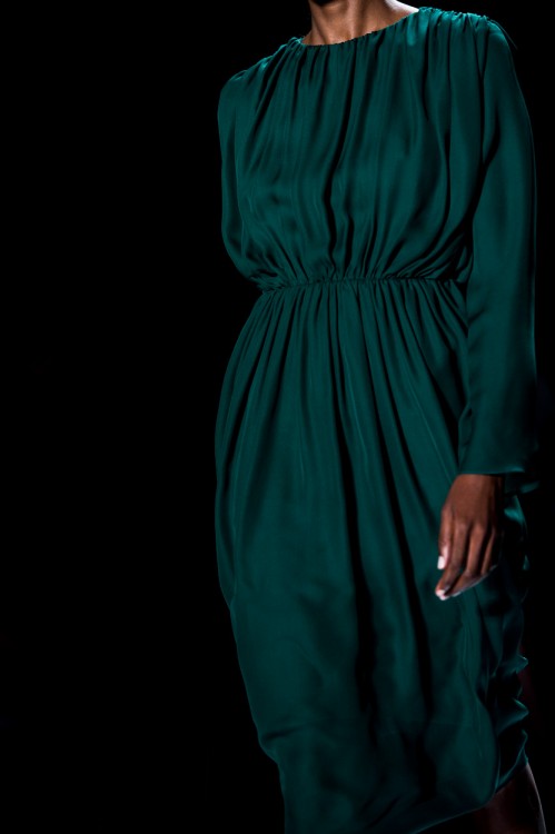 It seems the lady that Chadwick had in mind while designing this collection is lonely, but working on a path to find strength, and that could be seen by the increasingly strong style and silhouette of each design. The overall theme focused on minimalism, but with each model that entered the runway a more defined style emerged. I loved the start with boxy tops, simple silhouettes and neutral colors, which transitioned to a more colorful palette with feminine dresses and attention paid to intricate detail. I found myself taking the journey with the Chadwick Bell girl, and my favorite part of the discovery was the end, as she found a sense of style that left her feeling confident and strong.