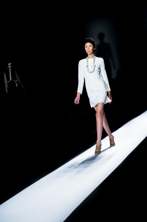 It was only last season that I attended my first Chadwick Bell show, and I felt like I found a little slice of heaven. While his shows are not absurdly packed – they’re shown in the intimate Studio setting at Lincoln Center – the entire vibe feels like you are going on a journey together. Perhaps coincidentally, Chadwick Bell Spring 2013 was all about a journey, or a “discovery;” for the lady who wears Chadwick Bell was looking to find herself.