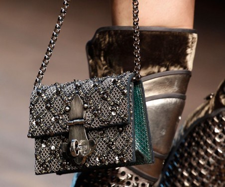In this selection of bags, there weren’t terribly many legacy Dolce shapes. Instead, the show was largely dominated by ornately embellished box shoulder bags and a few flap-closured top handles, and everything was utterly ornate. Beading, embroidery, metalwork, exotic skins, fur, crystals, velvet, brocade – the works, often in combination. Despite all of that stuff going on, almost all of the bags felt luxurious and well-designed, which isn’t always the case for pieces with so many competing elements. Dolce & Gabbana do very particular things, and they do them particularly well.