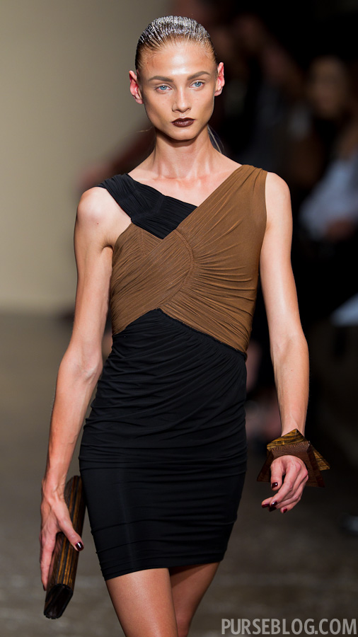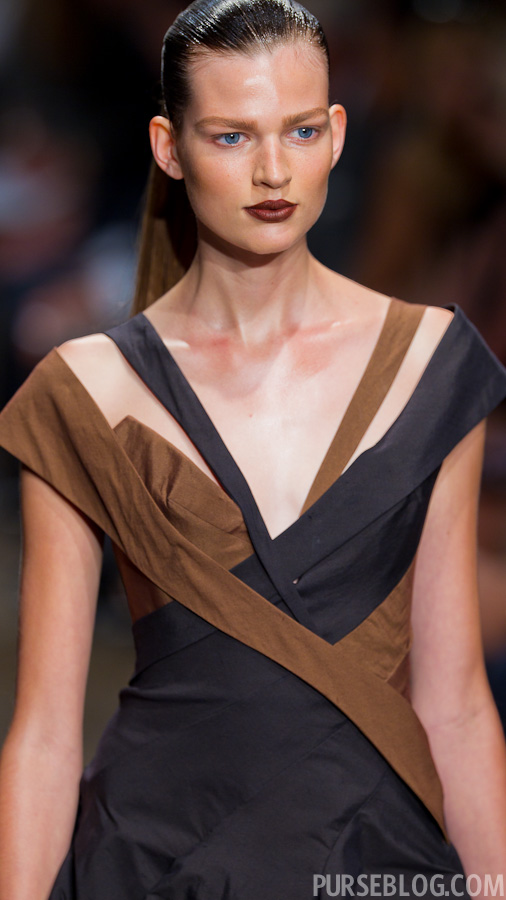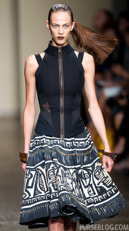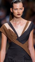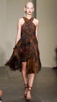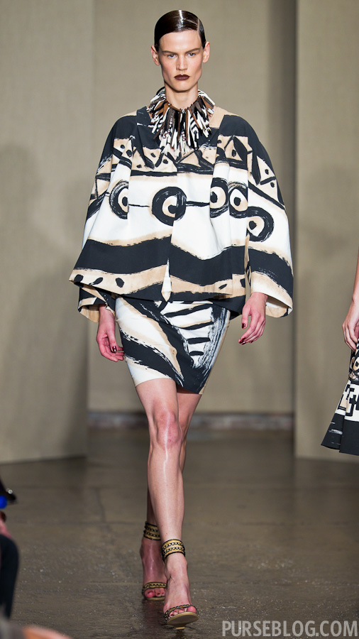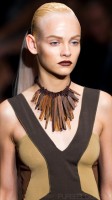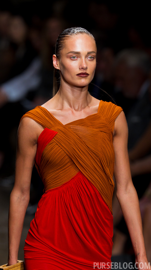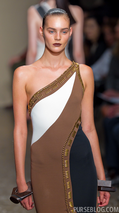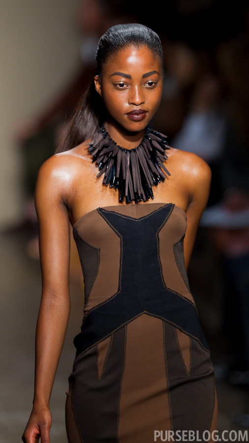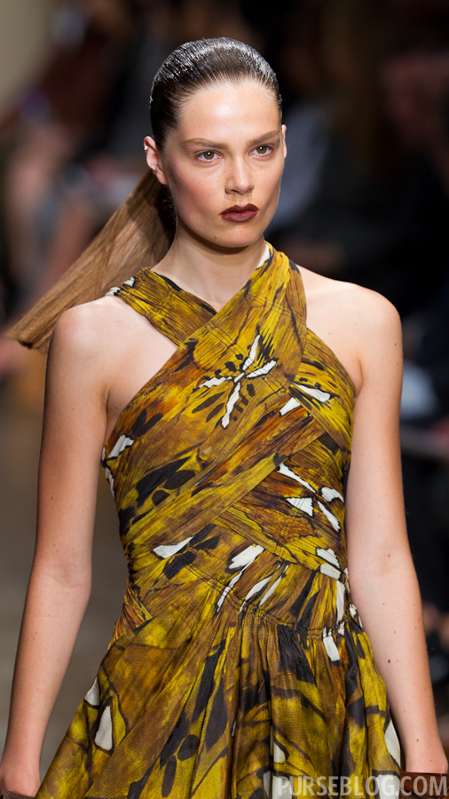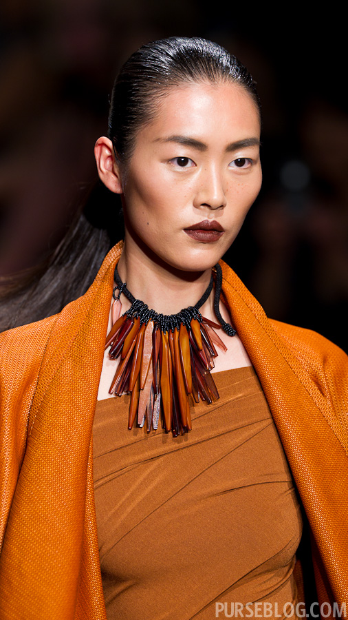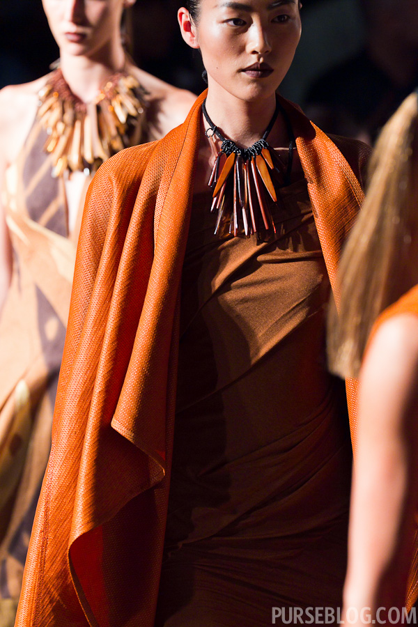 The more Mercedes-Benz Fashion Week New York shows I attend, the more easily I can separate the amazing from the merely good, and Donna Karan Spring 2012 was amazing. If I had to choose one word to describe the collection, it would be “tribal.” From the music that filled the space to every detail, we were shown a modern and subdued take on a tribal theme. Of course Donna Karan, who is known for her draping, integrated her defining style throughout the collection, yet we got more color and prints than usual. While Donna’s February show for Fall 2011 was comprised of muted neutrals, this line provided eye-catching patterns that kept true to Donna’s aesthetic while also adding statement pieces.