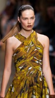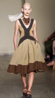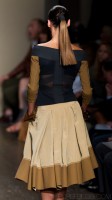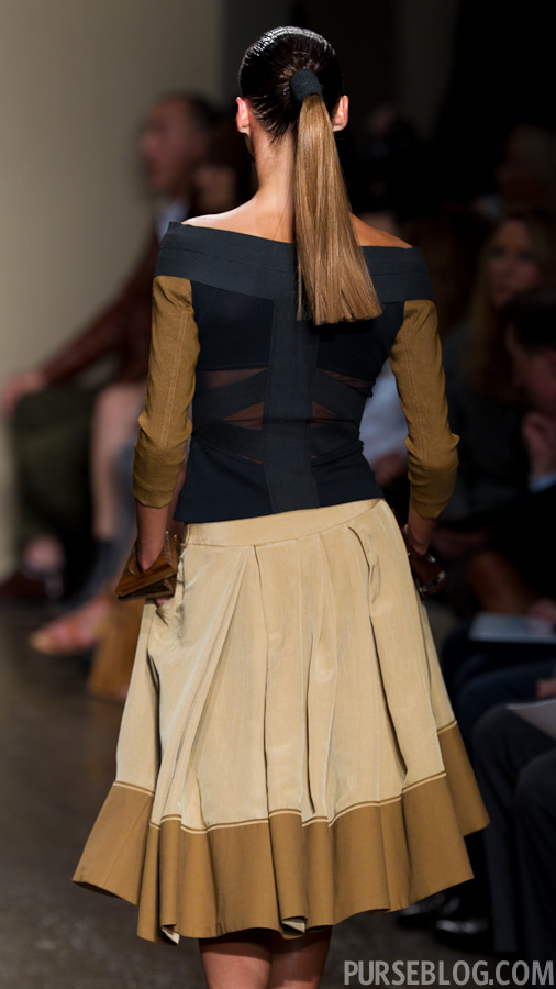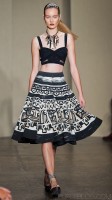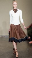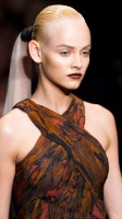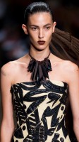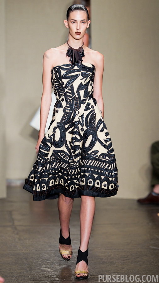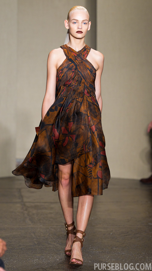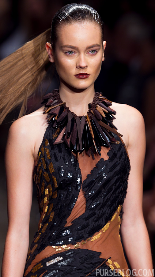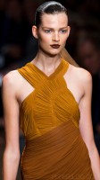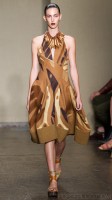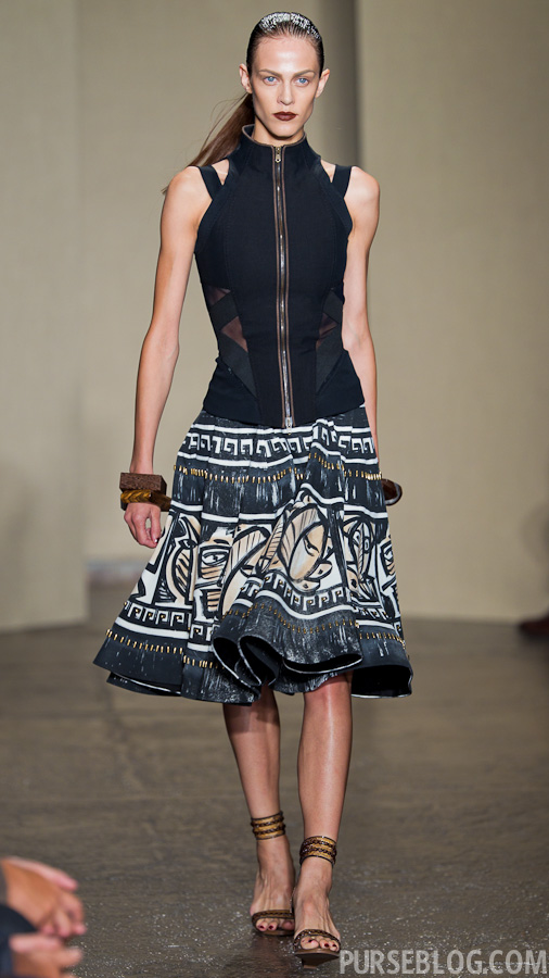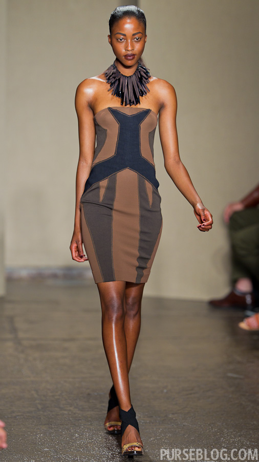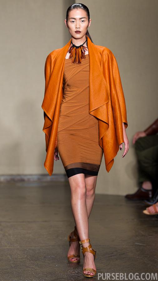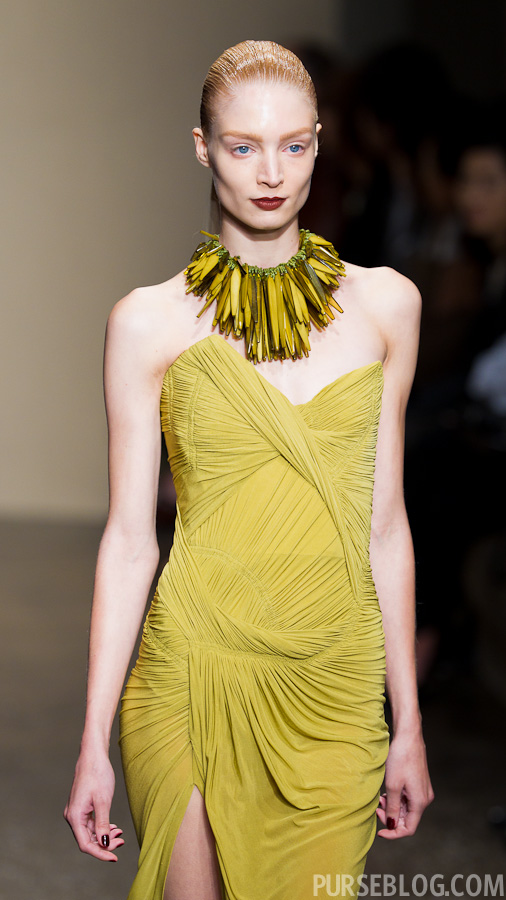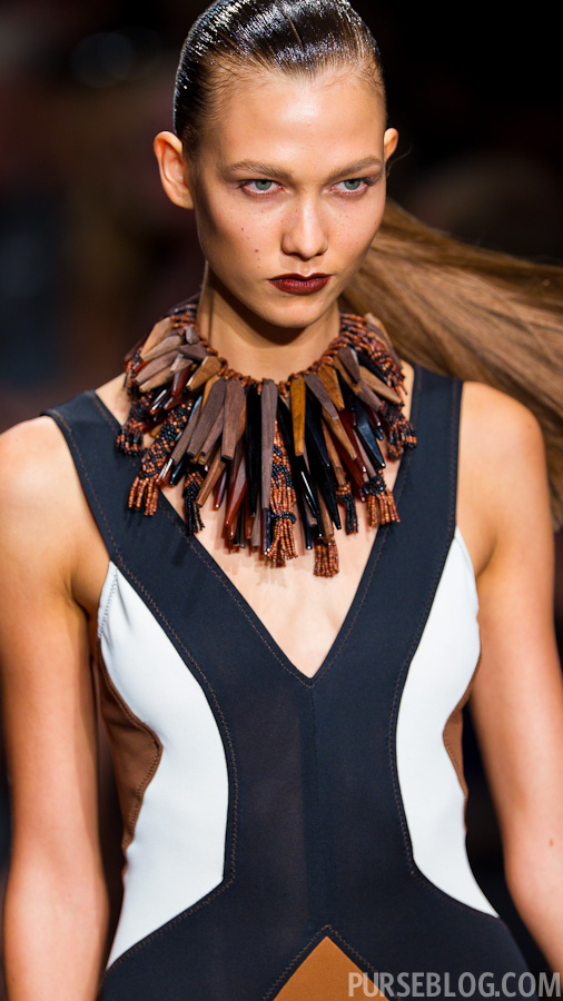 The more Mercedes-Benz Fashion Week New York shows I attend, the more easily I can separate the amazing from the merely good, and Donna Karan Spring 2012 was amazing. If I had to choose one word to describe the collection, it would be “tribal.” From the music that filled the space to every detail, we were shown a modern and subdued take on a tribal theme. Of course Donna Karan, who is known for her draping, integrated her defining style throughout the collection, yet we got more color and prints than usual. While Donna’s February show for Fall 2011 was comprised of muted neutrals, this line provided eye-catching patterns that kept true to Donna’s aesthetic while also adding statement pieces.