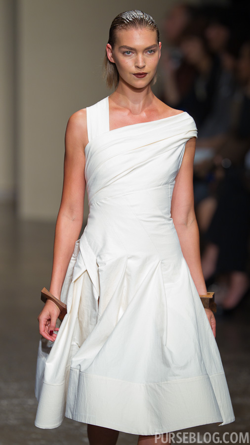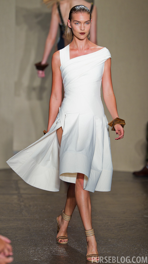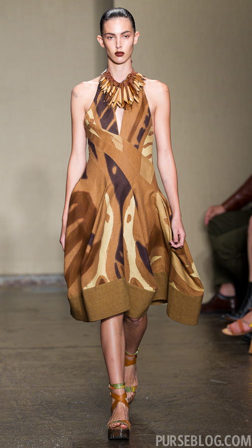 My gaze was immediately taken to the accessories; the shoes, bags, bangles and necklaces. Prints on the sandals had me yearning to add to my collection while the oversized bracelets and layered necklaces perfectly finished off the looks. While there were not many bags paired with the ensembles, the few that I saw mixed luscious leather with interesting textures in neutral colors. What I can say is that when the collection finished I was in love, and also saw so many looks that I would love to wear – which is a great sign of an amazing show.