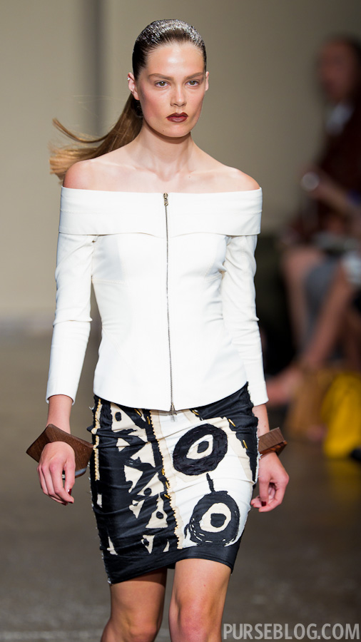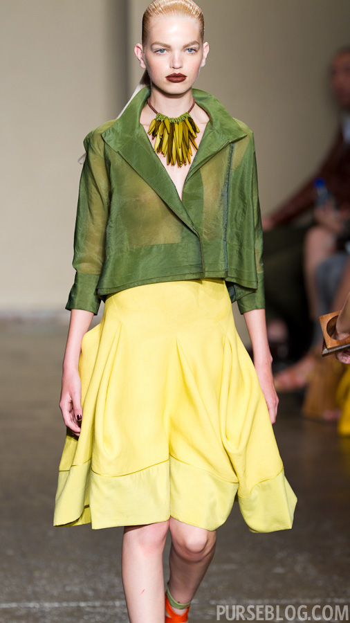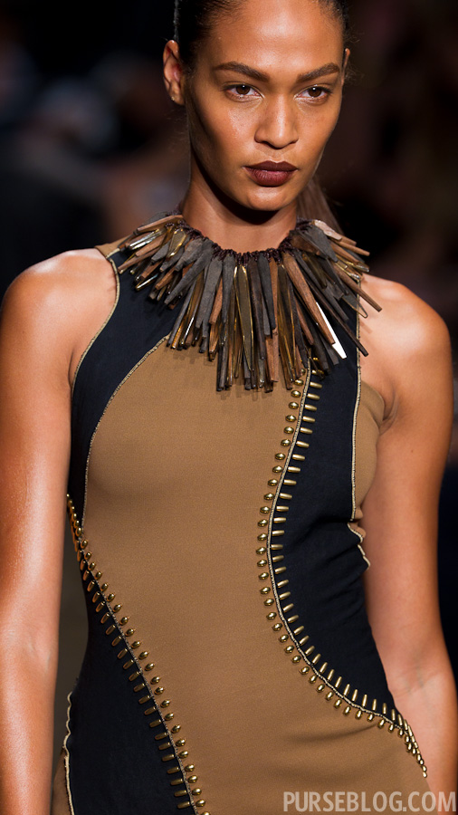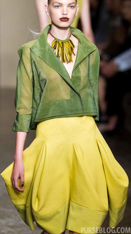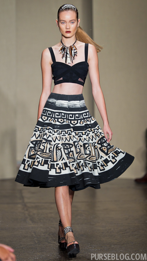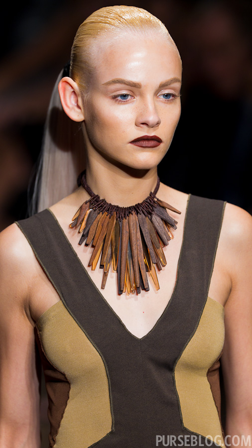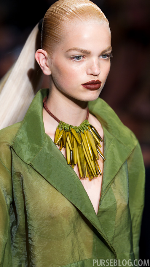 Lots of wood bracelets, and tribal accents. Very dramatic.. And the dresses are stunning. I love the solid white one, and the solid green one.. And there were a few skirts that I love.. Not a fan of the jackets though.