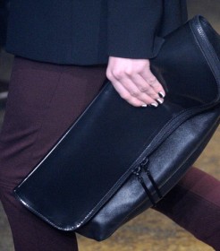 The runway didn’t yield many must-haves, but for a designer like Lim, it usually doesn’t. The accessories magic comes when these ideas are then married with the commercial wisdom that creates great handbags, and I have every faith in him that in a few months, we’ll see just that. After all, that’s how the 3.1 Phillip Lim 31 Hour Bag came about, and everyone’s in love with it. Check out the rest of the bags from the show after the jump.