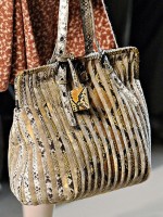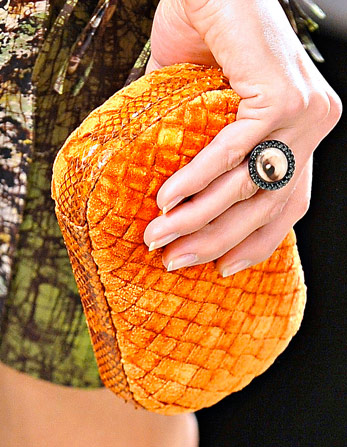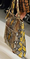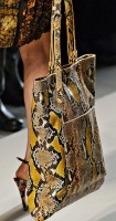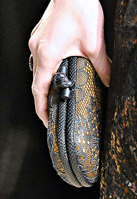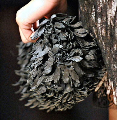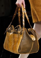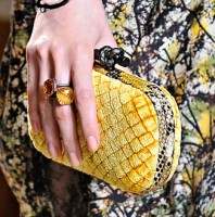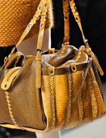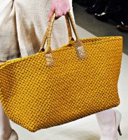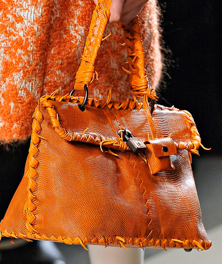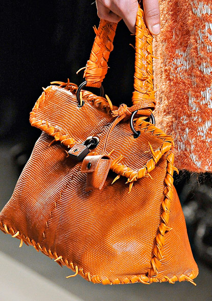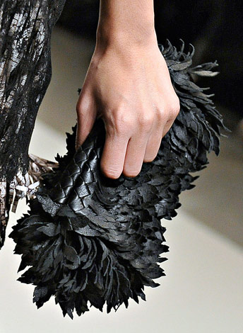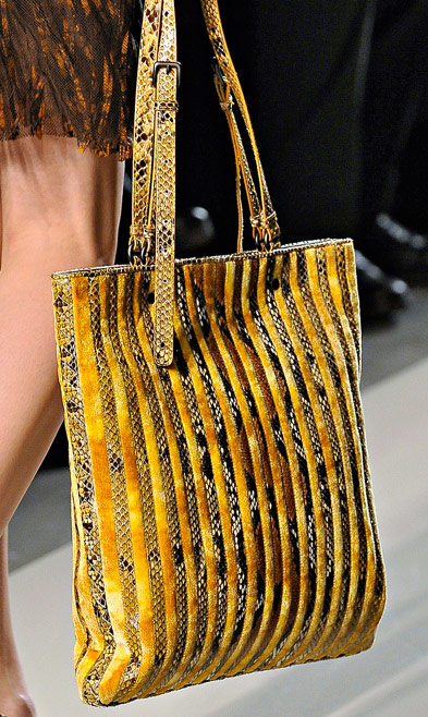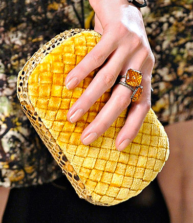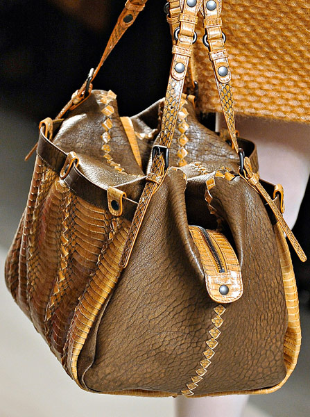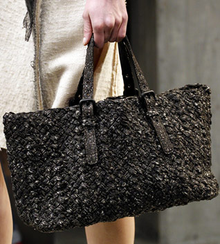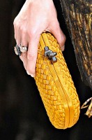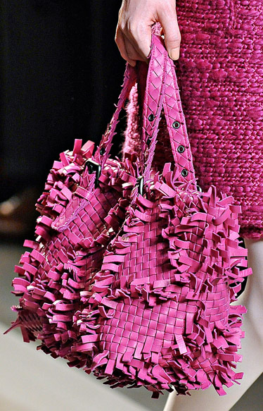 If you haven’t enjoyed the occasional deconstructed, undone intrecciato bags that Bottega Veneta has done in the past few seasons, you might want to skip a fair portion of this post. If you liked those ideas, though, Tomas Maier sure has a collection for you. Bottega Veneta Fall 2011 takes the strongly tailored Hitchcockian ideal of the 1960s and unravels it just enough to make it feel modern, and the bags follow suit from leafy leather clutches to frayed, unfinished-seeming woven totes.