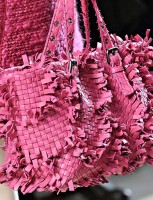 The constructed clutches are as lovely as Bottega gets; the “frayed” bags are fugley.