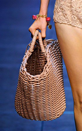 For a side dish, I wouldn’t mind one of Dolce’s ladylike straw (…is that wicker?) top handles, preferably in baby blue. Raffia and materials like it are set to be a big trend for spring and there’s nothing we can do to stop it, so we might as well embrace the designs that do it best. Perhaps because the brand has used woven materials in many of its bags for a number of seasons, Dolce & Gabbana’s straw options are better than most, with or without the added pieces of penne.