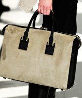The best pieces were those that built on Beckham’s vision from Spring 2011 – sharp, impeccably tailored handbags and clutches that would look spotlessly chic on the sort of women who never take off their heels. The collection also featured travel bags worn as cross-body backpacks of sorts, but because the styling made the bags difficult to see in their entirety, I’ll reserve judgment on those pieces until I can see them in person.