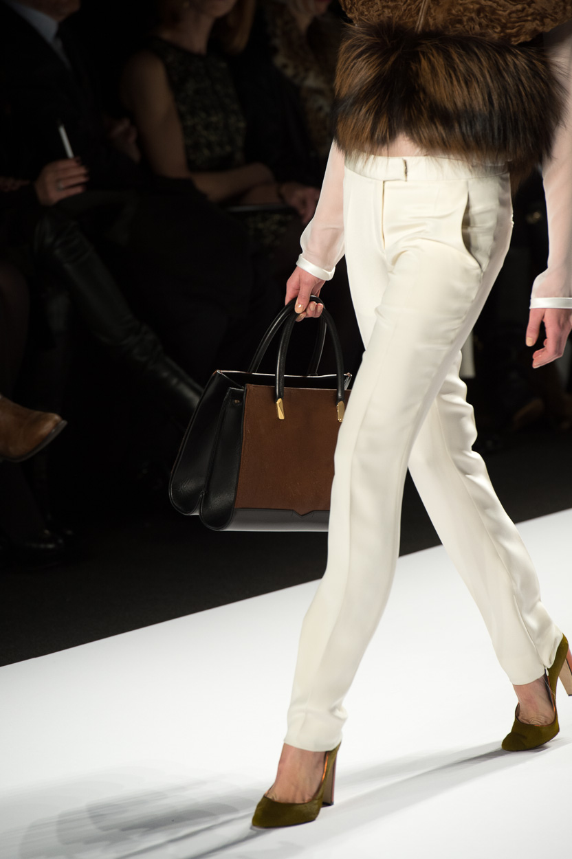 Sometimes I find it hard to go to a show at fashion week and not get carried away in the beauty of it all. I end up leaving a show and thinking how magical it was, but then I remember that just because the experience is great doesn’t mean the clothing was as well. That’s absolutely not the case for any J. Mendel show I’ve been to; actually quite the opposite. Each and every time, J. Mendel manages to take me away to an ethereal world of beauty and grace. You might only associate the brand with red carpet looks, but watch out, this designer has a blossoming knack for accessories that was on display during the Fall 2013 runway show.