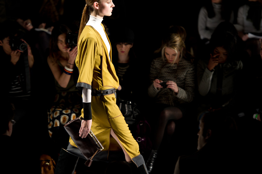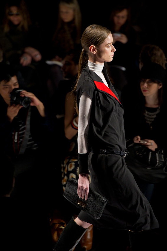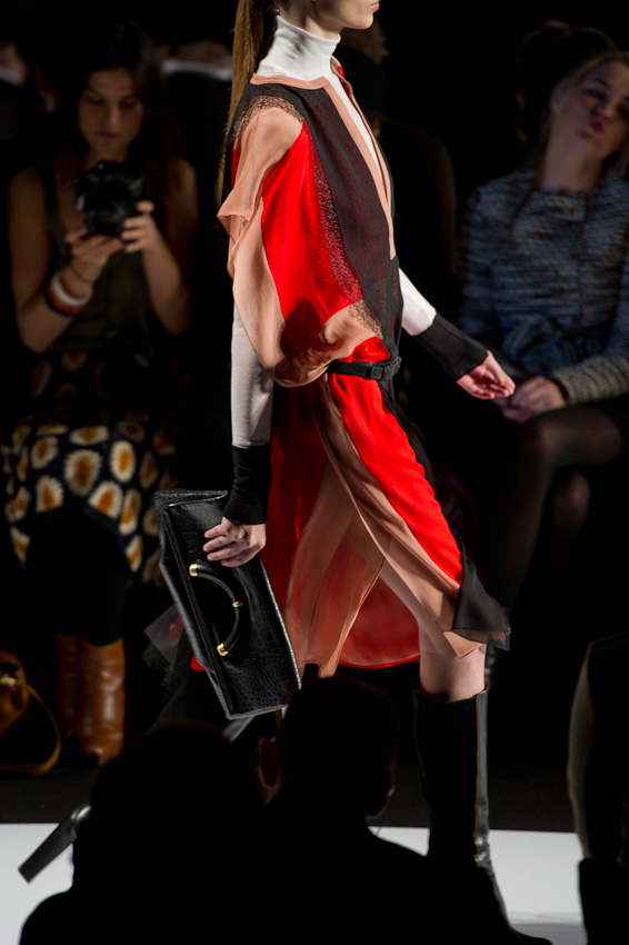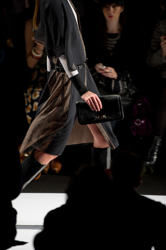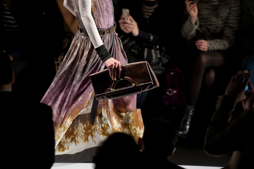 The collection flew down the runway effortlessly. There was almost a feel of spring but the deeply hued colors and layers reminded us that this line is meant for fall. When it came to the handbags we saw chic fold-over clutches and compact structured messenger bags. Both of these designs work well with the layered look, ending with an almost boho vibe. Overall the BCBG Max Azria Fall 2011 collection is both simple and wearable, which is what most of us look for in a line.
