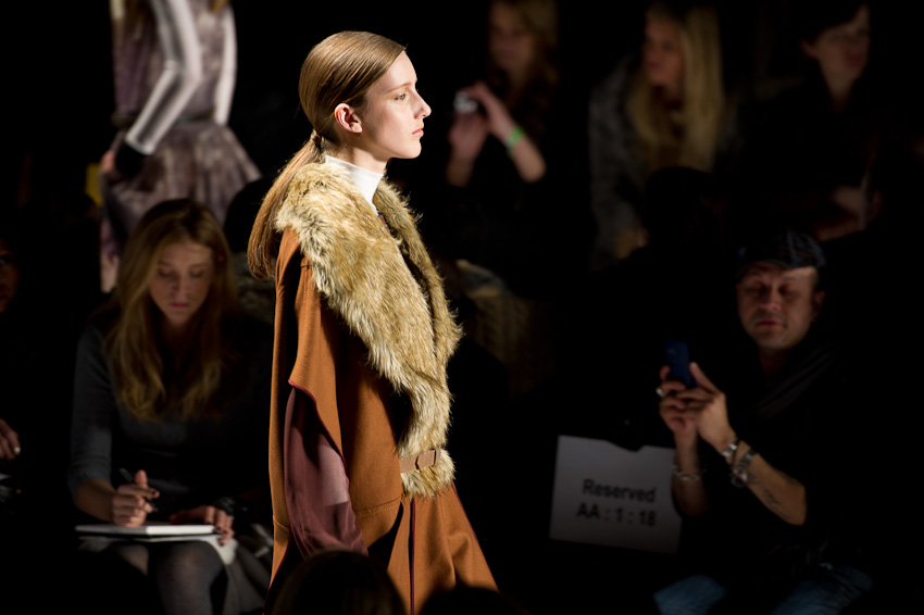 This morning we kicked off Mercedes-Benz Fashion Week New York by attending the BCBG Max Azria Fall 2011 show. Rather than overwhelming heavy layers, the collection felt light and airy fitting perfectly into fall’s aesthetic.