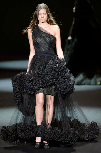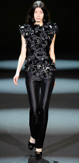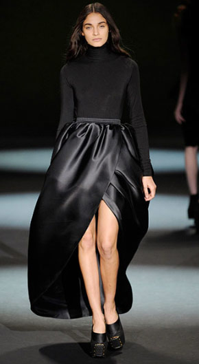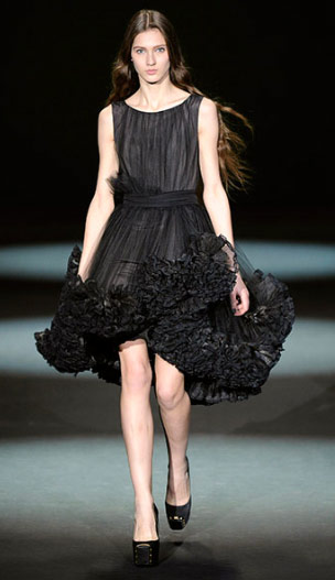 Don’t get me wrong – like any member of the fashion industry, I love black and own a great deal of it. But when I think of Project Runway favorite Christian Siriano, somber darkness isn’t necessarily what comes to mind or what I expected to see in his Fall 2011 collection. But more than anything, black is what I found.