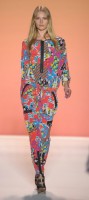 As with any designer that chooses a very strong visual idea, some pieces will be hits and others will be misses. Miller’s prints and neons (and printed neons) played best when the shapes were modern; when both the garments’ structures and colors were retro, the theme went a bit too far. The entire collection was a lot of fun to watch, though, even if maximalist color and pattern aren’t your look.