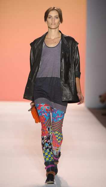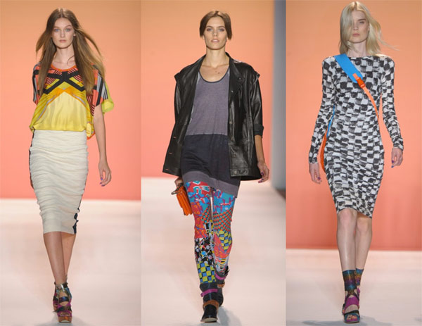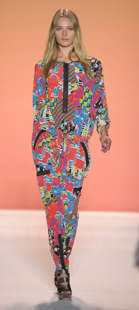Holy 1980s prints, PurseBloggers. Nicole Miller Spring 2012 had them in spades during her showing this evening at Mercedes-Benz Fashion Week New York, and when you think about the timeline of Miller’s company, it makes sense. She got her start during the 80s heyday, and her collection for spring seemed to be a wall-to-wall homage to that.