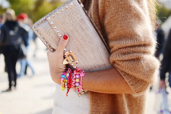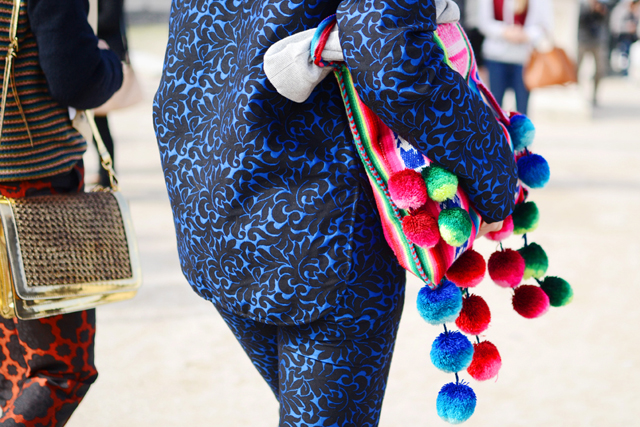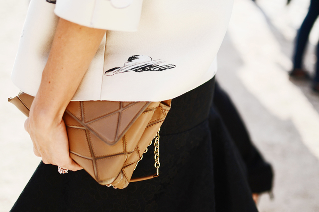 My biggest complaint about street style photography has always been that there aren’t enough detail shots. Sure, it’s nice to see the overall picture, but so much is lost in the exclusion of the details – the grain of a piece of fine leather, the thousands of little crystals that make a piece of jewelry gleam, the subtle colors in printed silk. Also, the handbags – SHOW US THE HANDBAGS, PLEASE.