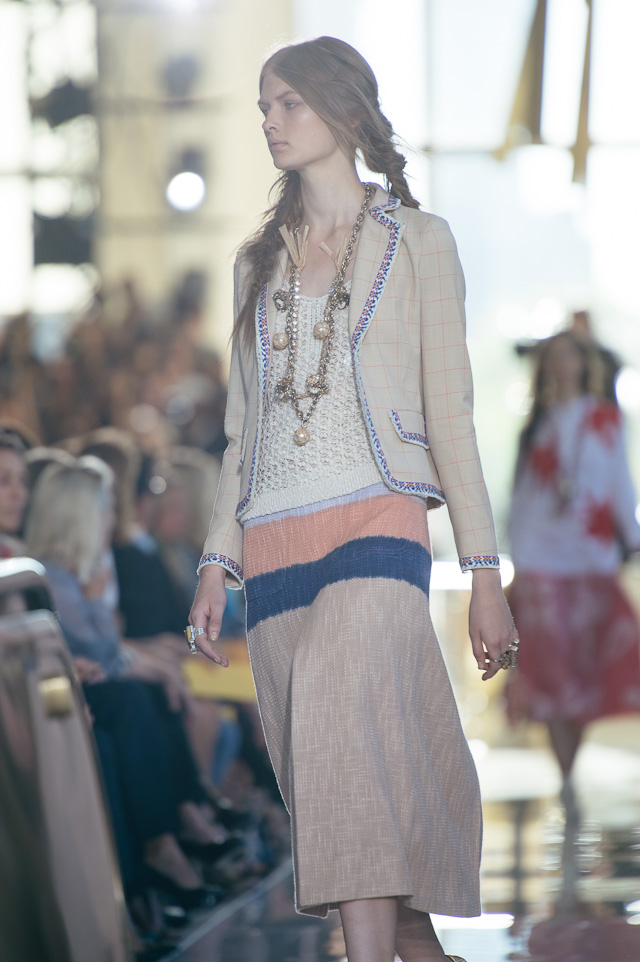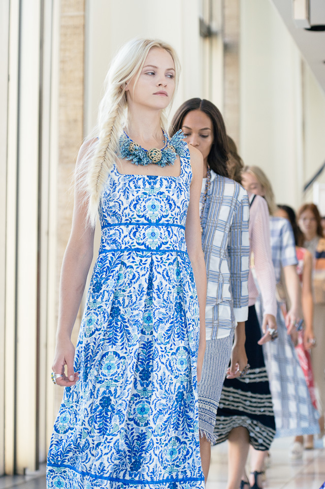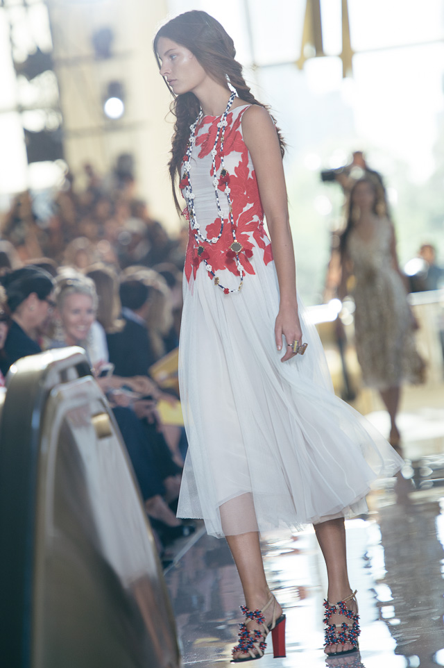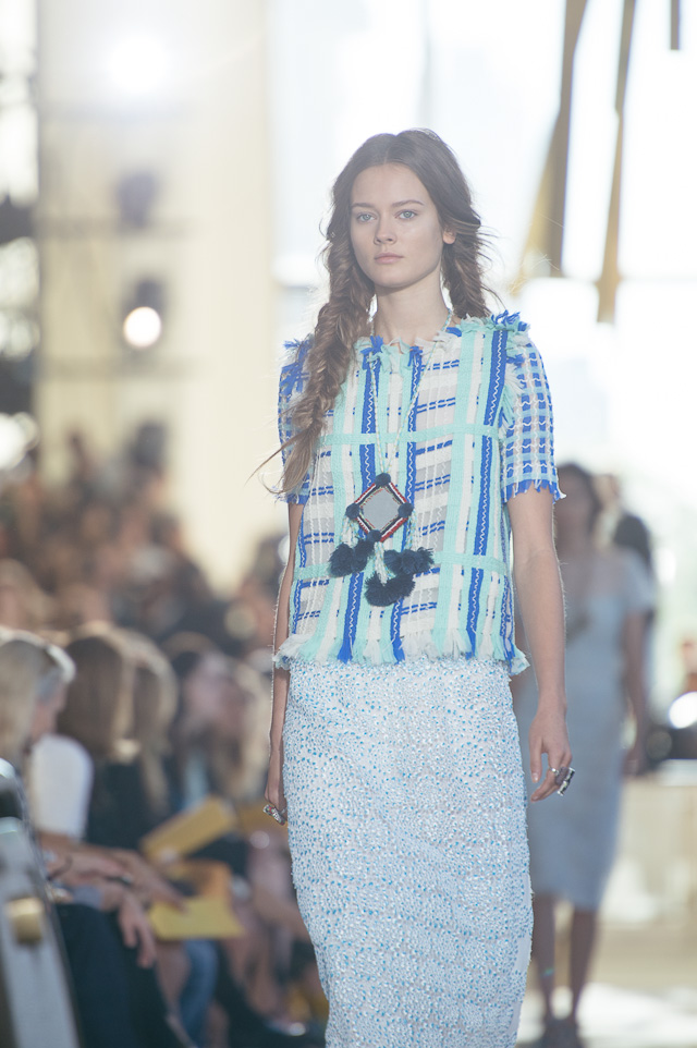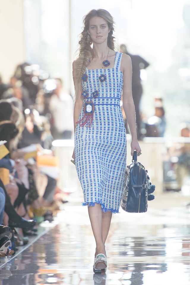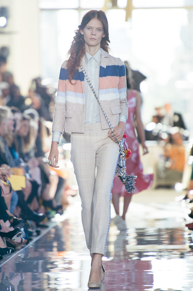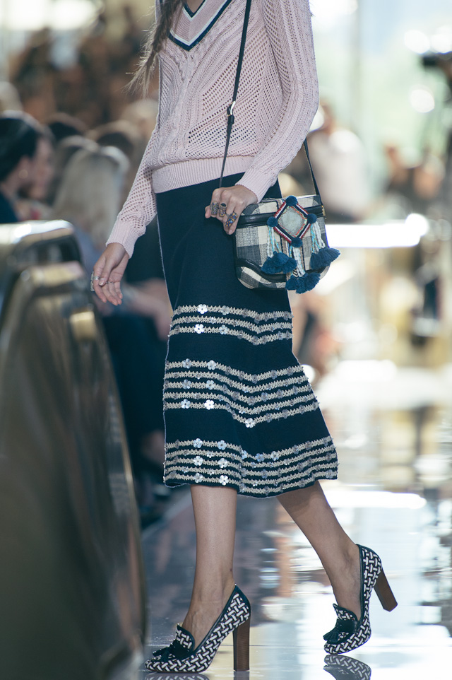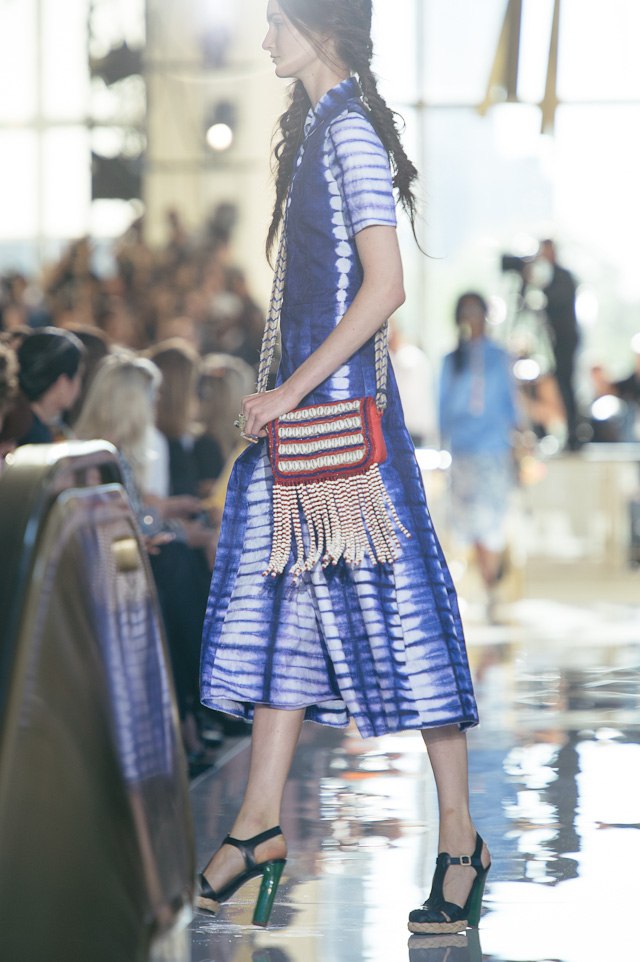 For spring, we took a trip with Tory’s collection – the show’s tribal theme was clearly inspired by the designer’s international travels. The first looks sashayed down the runway in beautiful hues of yellow, black, and cream, followed by looks in muted rouges and floral prints. The bags were entirely funky and varied from structured travel bags with prints and patterns to small crossbody bags adorned with tassels and bobbles. The Tory Burch girl is spunky, well-traveled, and fun, she doesn’t take herself too seriously but she cares to dress as carefree and immaculately as possible, which is precisely what this collection delivered. The Parisian touches from last season are long gone and easy breezy pieces are here to stay. These are by far the best designs I have seen from Tory, and if this is a look at what is to come, I want to see more.