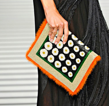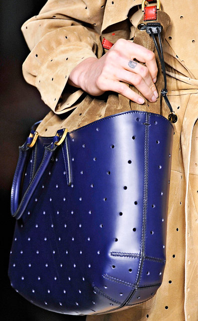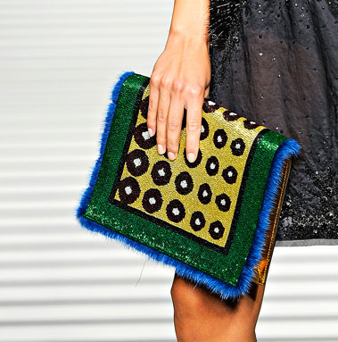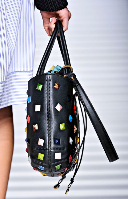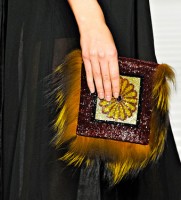 I’m not here to critique the ready-to-wear, but I think it’s relevant to say that the entire thing made me think that Fendi really, really wants to be Prada when it grows up. Karl Lagerfeld made a lot of overtures to the wearable, intellectual, modernist quirk that has become Miuccia’s signature, but the final products felt like the designs were reaching for something they didn’t quite accomplish. That’s doubly true for the multicolored studded bags and all the totes that look like they’re birthing suede hobos. Maybe these bags are just so different that I need to give them a chance to grow on me, but right now, I simply don’t get it, with the exception of the couple clutches with the extra-short fur trim. Those can stay. Cathy Horyn disagrees with me, though, so I’m probably wrong.