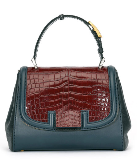 Fall continues some of the biggest hits from that line, including the ladylike multicolor satchels with crocodile flaps, and it also introduces several more multicolor options in the form of slouchy totes and shoulder bags with elongated straps. Some of these asymmetrically shaded designs work better than others, and I hope to see them hit retail in bright combinations as well as the neutrals seen here. For now, my collection winner in the blue patent shoulder bag that you see above.