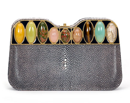 The shagreen clutch with the (what I assume to be) turquoise jewels is wonderful, too.