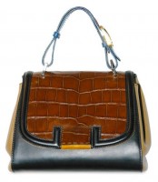 the one that keeps me looking to it, is the one with crocodile skin in the front cover, brown leather, caramel lether in the sides, and black leather in the baxk side, with handles in blue crocodile, ohh, it´s really beautiful this one…That´s the one Silvana Fendi´s bag for me.