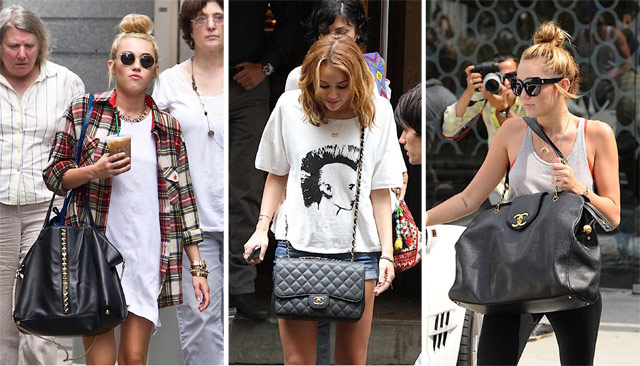 Miley Cyrus went from Disney Princess to a young fashionista, and spent 2012 making a statement by dying and cutting her hair. She also has a downtown cool style, and this goes for her bags as well.