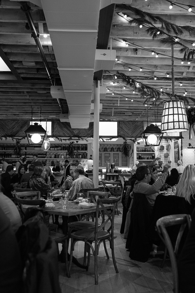 First up, we headed to one of the cutest corners in all of West Village to dine at Rosemary’s Enoteca & Trattoria. The restaurant has a rustic Italian farmhouse decor, with plenty of wooden tables (many communal), big glass windows and a spacious bar. Apart from looking beautiful year-round with twinkle lights that hang from the beamed ceiling, Rosemary’s looks especially charming during the holidays, decorated with giant wreaths and Christmas trees throughout. Rosemary’s even has a Christmas tree in its rooftop garden, where the restaurant pulls some of its veggies during the warmer months.