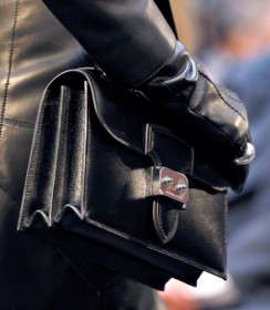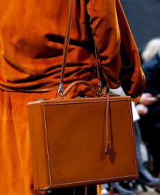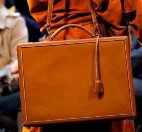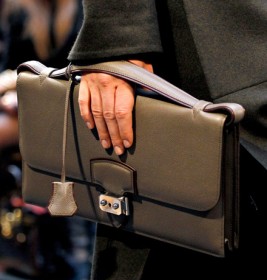 You can probably guess by now that there weren’t many bags to analyze in the Hermes Fall 2012 show, but the ones that were there were largely excellent. Well, except for one horror show of an 80s H-monogrammed attache case. Completely disregard that one and maybe we can just pretend it never happened. Other than that, the structured, brief-inspired shoulder bags were uniformly wonderful, not to mention a nice, if small, step forward for the Hermes leather goods aesthetic. I only wish there had been more of them to enjoy.