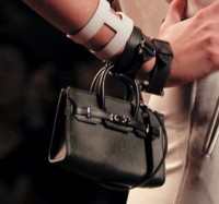 If I told you that the bag to the left were actually made of real, honest-to-God crocodile, would you think I was lying? I wouldn’t blame you if you did, because I’ve never before encountered crocodile skin that I could see through, but Style.com seems to indicate that it’s the genuine article. From that to picnic basket and fanny pack Kellys and tiny Birkins hanging from cuff bracelets, it seems as though Gaultier had a fine time with his last trip through the Hermes accessory archives.