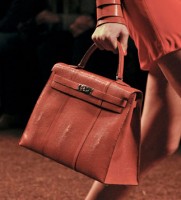 It has often seemed as though Jean Paul Gaultier’s favorite thing to do on the Hermes runway is riff on the classics that make the brand so iconic and successful, and Hermes Spring 2011, Gaultier’s swan song with the brand, was a horse-tastic, S&M-tinged ode to exactly those tendencies. The handbags mostly stayed clear of the psychosexual leanings of clothing, but that isn’t to say that they weren’t interesting.