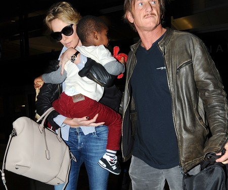 Here’s Charlize Theron, arriving at LAX with her son Jackson and boyfriend Sean Penn, carrying a Louis Vuitton Soft Lockit Bag. The Soft Lockit is a brand new launch for Louis Vuitton, and Megs penned an extensive review of this reinvented LV classic earlier in the week. The Soft Lockit does, of course, come with a very A-Lister price tag – you can purchase it for $4,250 at Louis Vuitton stores. It’s not currently sold online.