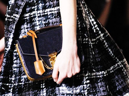 So far, the bag is available in one material, a patent version of Louis Vuitton’s popular Epi leather, and comes in two colors: navy and tan. The regular-size Pochette Mètis isn’t available in Epi of any kind, which will likely be draw for Vuitton’s obsessive customer base. The other big difference between the two is in the strap; the new version hangs on a delicate golden crossbody chain, as opposed to the original’s leather strap.