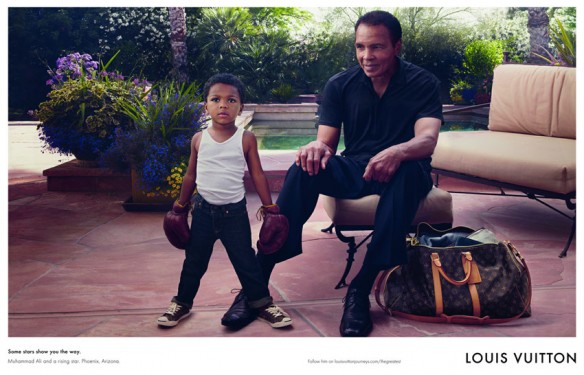 Following the likes of Angelina Jolie, Buzz Aldrin and Bono, three-time World Heavyweight Champion Muhammad Ali is the newest face of the Louis Vuitton Core Values campaign, alongside one of his grandsons. When announced at the end of last week, Vuitton CEO Yves Carcelle said, “”Muhammad Ali is the epitome of an outstanding personality – a true living legend in boxing and far beyond.” The photos were shot by Annie Leibovitz at the boxer’s Phoenix home.
