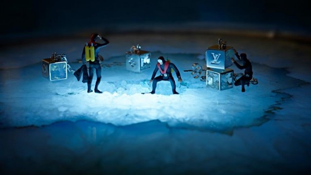 It’s finally Friday, and we are ending the week with a little Louis Vuitton fun with photos! Photographer Vincent Bousserez had an idea similar to the movie Night at the Museum, but in this case, the Louis Vuitton Champs-Elysees store comes to life at night, and tiny figures take care and engage with beloved Louis Vuitton items. The photos are whimsical and magical and bring back childhood feelings of tiny little people taking care of our world when we are asleep.