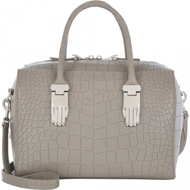 Opening Ceremony occupies a spot in the fashion landscape that they’ve managed to fill with high-style irony and irreverence, but the HAND-le attachments on the Lele line stepped over the line into eye-roll-inducing territory. They look cheap, but not intentionally cheap, especially on this streamlined, sublimely textured grey faux crocodile version.
