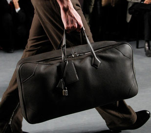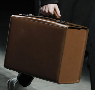 I like the traditional shapes: the duffels (#4 Dirk Bikkembergs, #5 Emporio Armani, #6 Zegna, #9 Hermes, #10 Varvatos), the crocodile brief #8 Giorgio Armani, the structured brief by Prada and the LV portfolio.