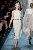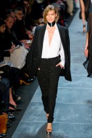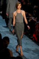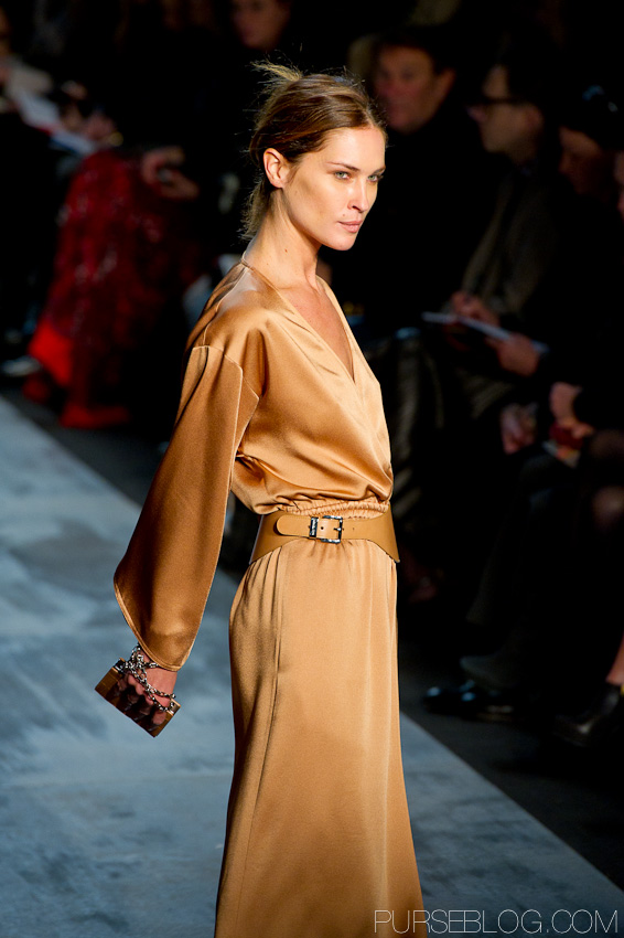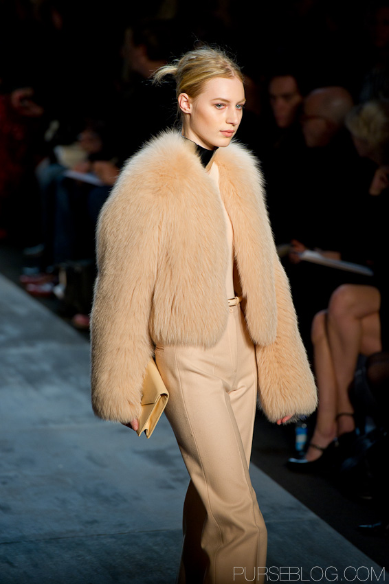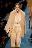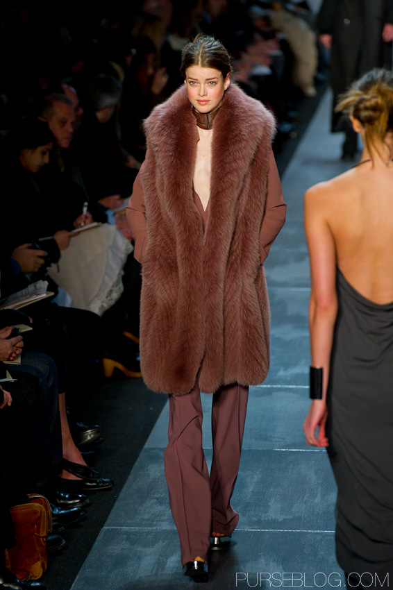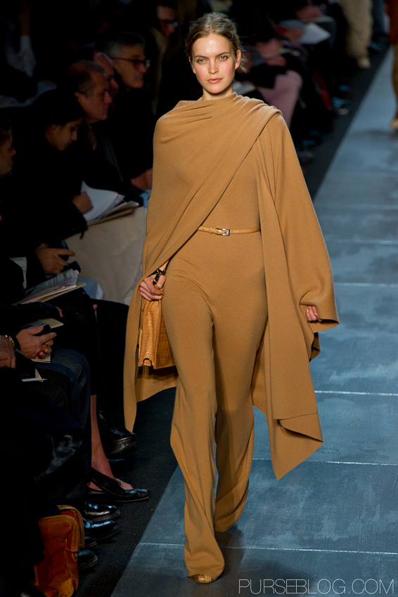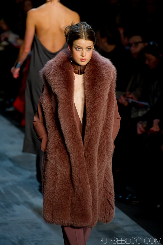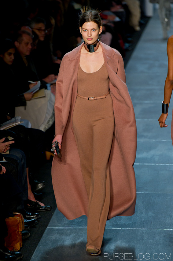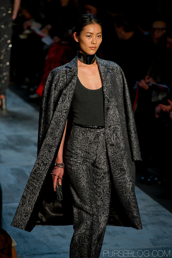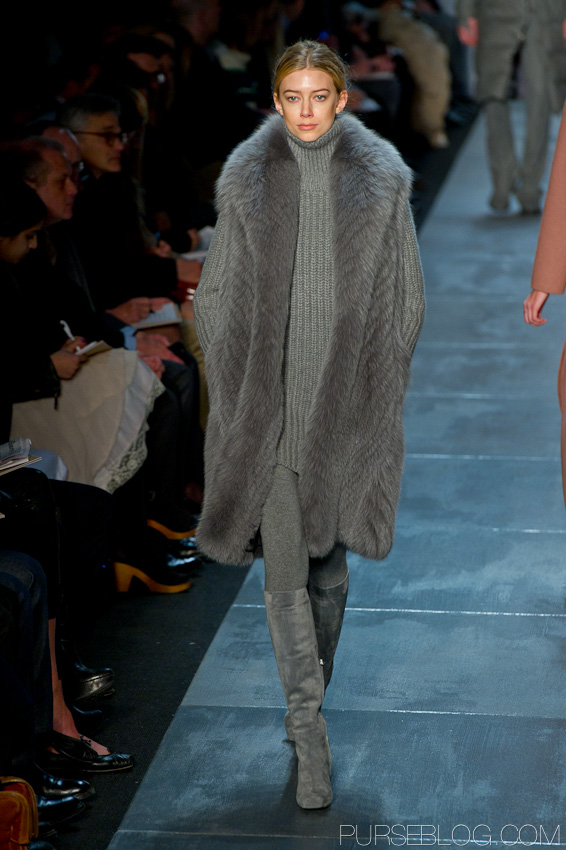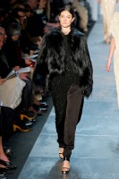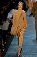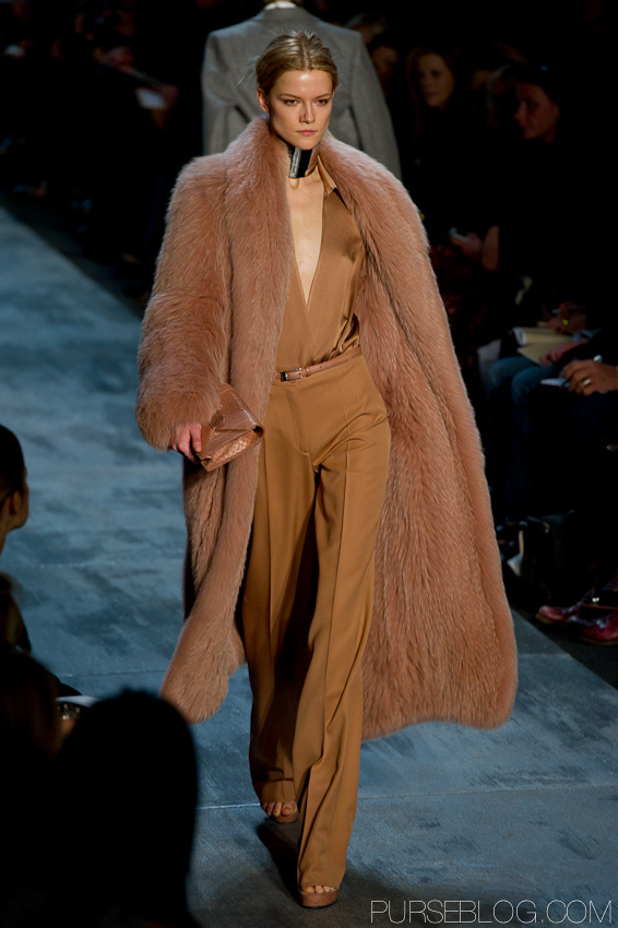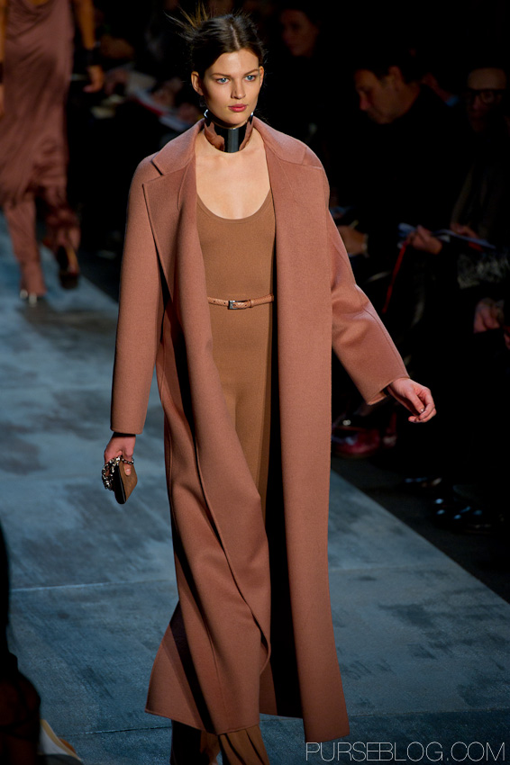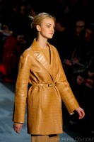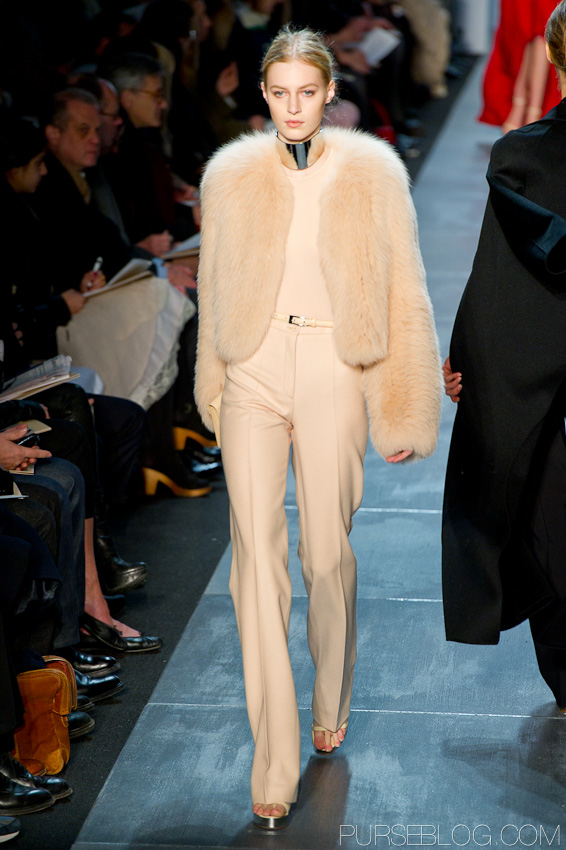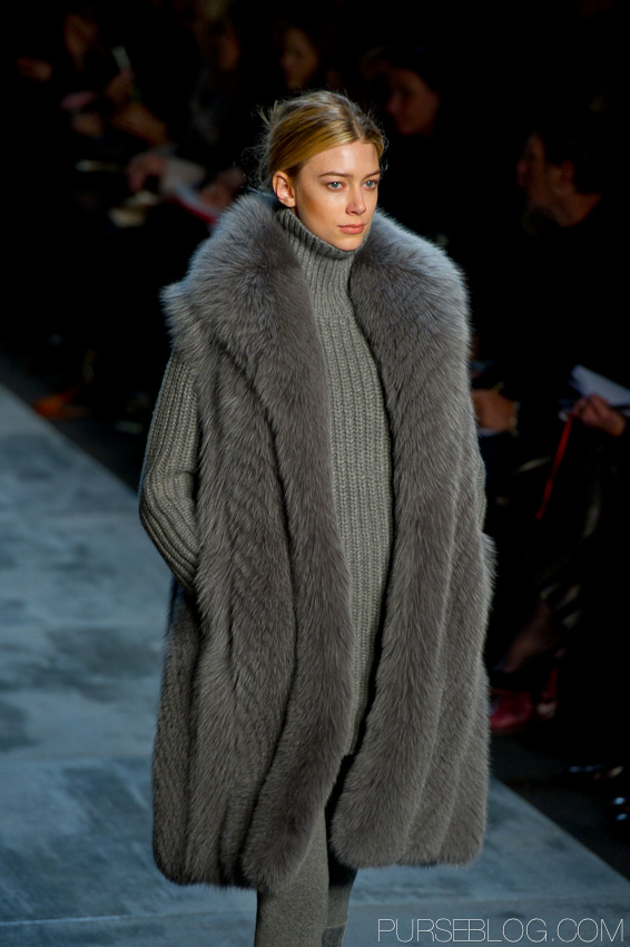 The collection was admirable beyond just the red, though. Kors’ outerwear in particular shone brightly, with everything from calf-grazing fur vests to floor-length wool overcoats to a stunning carmel crocodile short trench punctuating monochromatic neutral looks in shades from charcoal to chocolate. The feeling of the separates was comfortable and easy but still totally put-together and incredibly chic, which means that Kors likely accomplished exactly that he set out to do. We’re the real winners here, though, for being the future owners of his beautiful clothing.