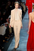 We’re only a few days and a few dozen shows in to Fashion Month, but the first clear color trend has already emerged in quite an obvious way: Come fall, you’re going to be seeing red. Michael Kors Fall 2011 followed that theme in a beautiful and uniquely American way, shooting a neutral collection through with a bursts of bright, combustible vermillion.