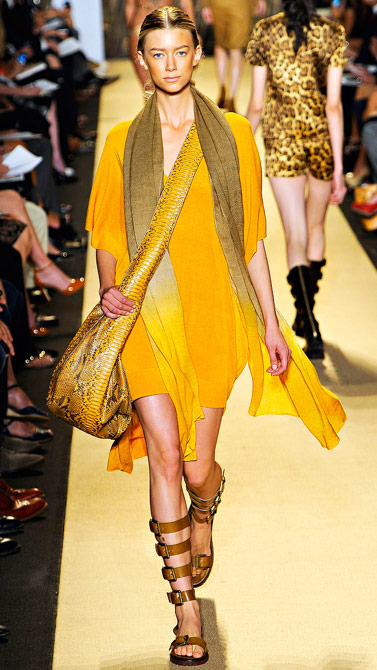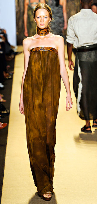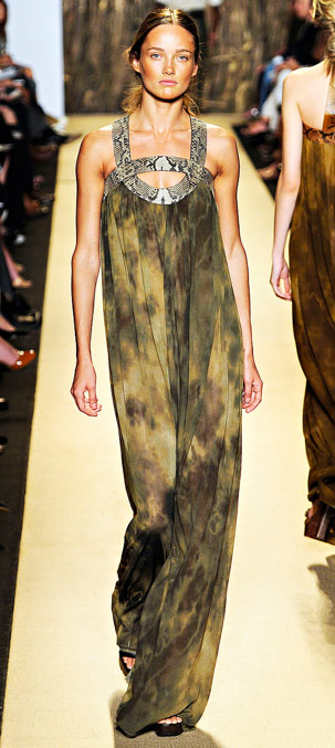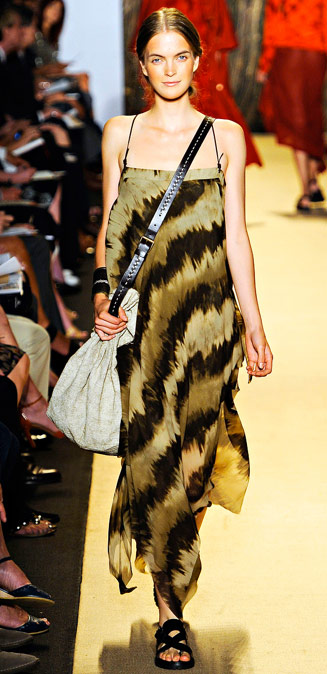 You guys, this is clearly not Michael Kors’ first time at the rodeo, even if it was his first time on safari. Kors used a recent trip to a luxurious South African resort in the middle of a nature reserve to power the Michael Kors Spring 2012 show at Mercedes-Benz Fashion Week New York, and if you’re having a hard time seeing the theme in these photos, then you might want to get your eyes checked. From the prints to the proportions to the accessories, Kors’ clothes were steadfastly “Afriluxe,” as he called it in his show notes.