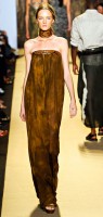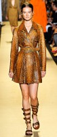 The tie-dye prints were the easy standout of the collection, and they were wearable and casual in a way that’s rarely elevated to luxuriousness on the runway. Kors pulled it off, though, and things got even better when those pieces were accented with tonal python. The best look? A full tan-orange python trench coat, which I dare you not to stare at for at least a solid 30 seconds.