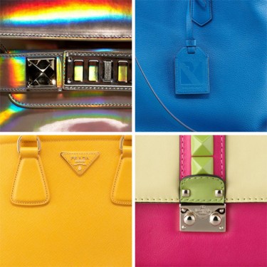 McQueen’s the Hero (black leather, black&white leather combo or maroon suede) or Gucci’s Stirrup (hard shape, gray leather with perforated detailing) – both classic, practical totes that are stylistically distinct; from this list – the yellow Prada.