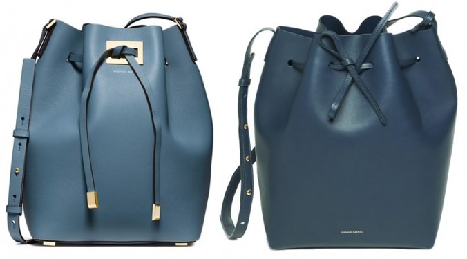 The word I would use for Michael Kors is derivative. Knock-off is really the wrong word as Amanda said. A knock-off is when the bag in question claims to be the designer (i.e. a fake Louis Vuitton which attempts to copy the LV monogram and other elements). I don’t have a problem with the similarity of the above bucket bags. I never thought the Mansur Gavriel was very original either.