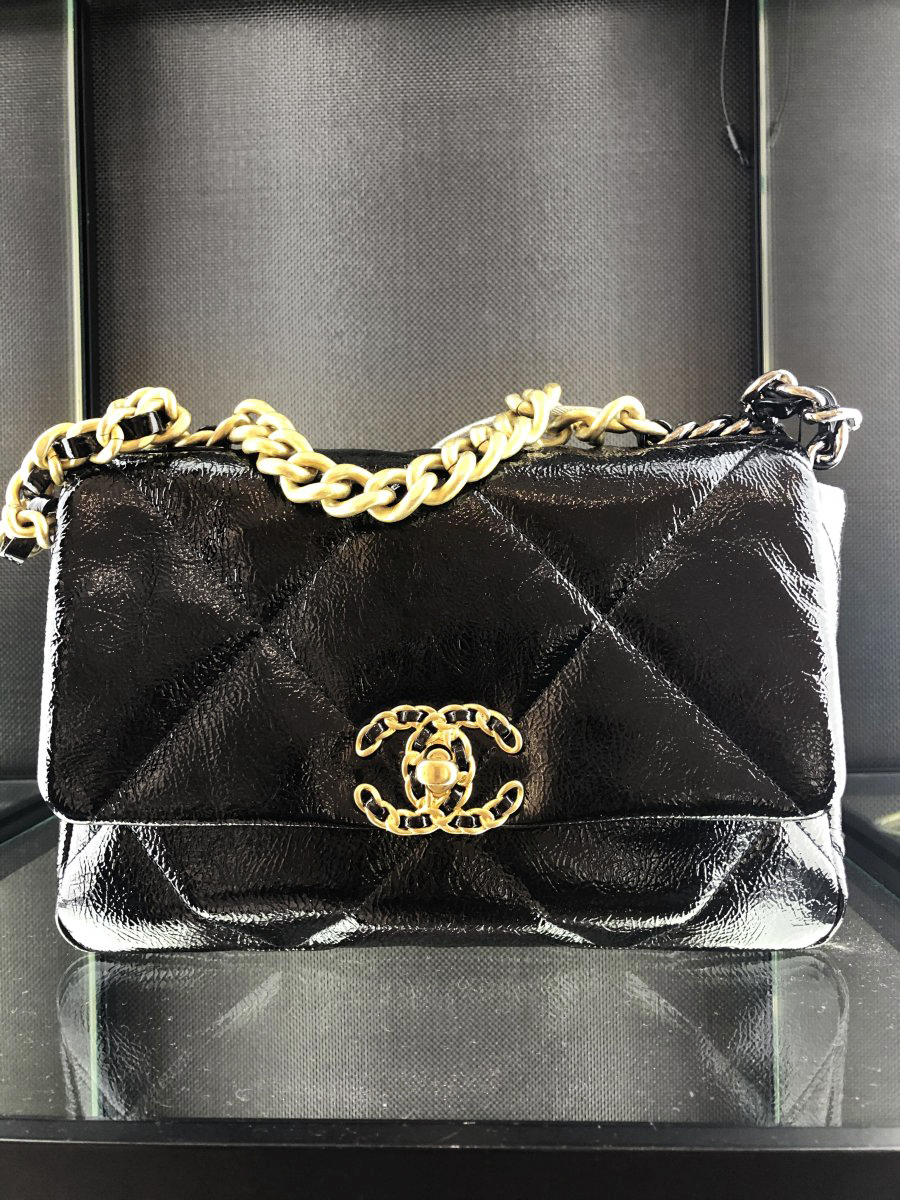 A unique beauty, this Chanel 19 in black glazed calf posted by our member lindseyhutter in the “19 Flap Bag Club!” thread really caught our eye.