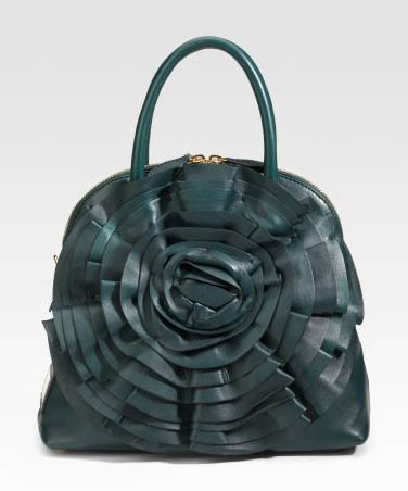 A lot of their bags are ruffly and fluffy and plush in a way that few other designers are able to execute with any level of skill at all, but this one is just sort of flat. And I mean that both literally and figuratively. In the physical sense, it looks like this bag was shipped in a box stuffed with a few too many of its brothers and sisters. Instead of big and fabulous, the flowered front looks squashed and flat. And it’s not just the picture – the bag looks like that in person too, or maybe like someone cut off the big petals at the base, and this is all that’s left. As a result, the bag doesn’t have the personality that most of the similarly themed Valentino bags have, and I’ll have to take a pass on this one. Buy through Saks for $2495.