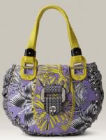 Believe it or not, Versace used to have some amazing bags. I personally own several Versace bags that goes back almost 15 years and every time I use it, people not only complement them but also ask where they can get it. One was a unique python, another was a black/white weaved boston bag. That said, the last few years, I’m not sure what Donatella is on because the bags are bizarre and some are just downright fugly! (remember the blue and pink rabbit fur atrocities?- they were as awful in real life as in pictures). For some reason, i’m not completely turned off by this bag, next to a black dress, the colors can actually work. One thing for sure, this bag is not boring as so many so call designer bags since they are all copies of one of another.