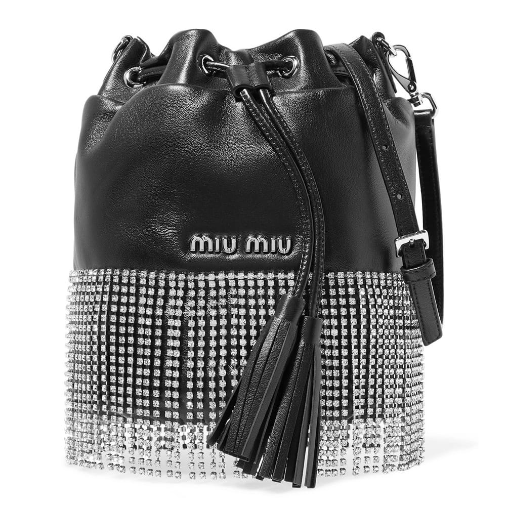 Leave it (except for the Miu Miu crystal). I have a beautiful, leather fringe mini bag. I spend my time worried if it’s going to get caught on something or a fringe will pop off.