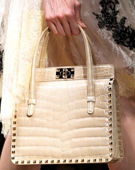 Valentino Spring 2012 is one such collection; I did a lot of complaining about the brand’s Fall 2011 runway bags, but this group is altogether more refined and well-conceived than previous lines have felt. Some of last season’s elements, including studded hand straps, can be found in these designs, but they’re used in ways that feel more natural and functional. This is the collection that Valentino should have showed last season, but I’m glad they decided to show it at all.